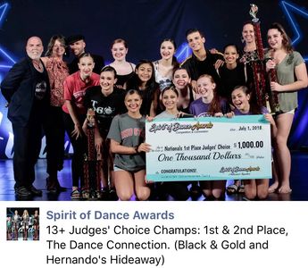 TDC Took most of the Top Awards at Spirit of Dance Awards Nationals this past July including $1,000.00 for The Judges Choice Battle Champion!